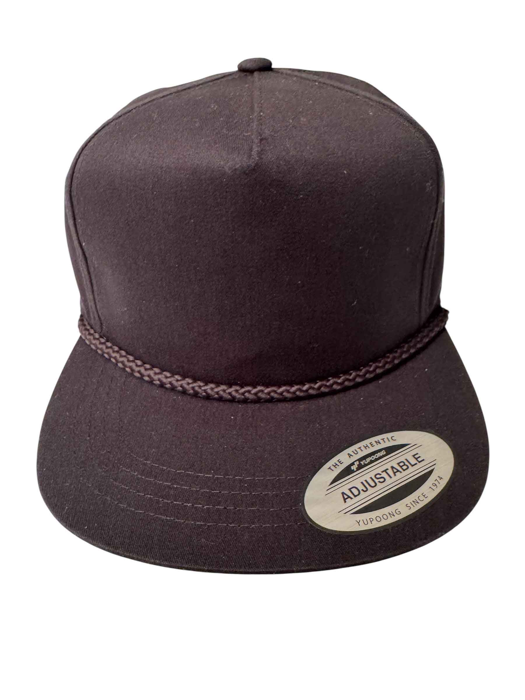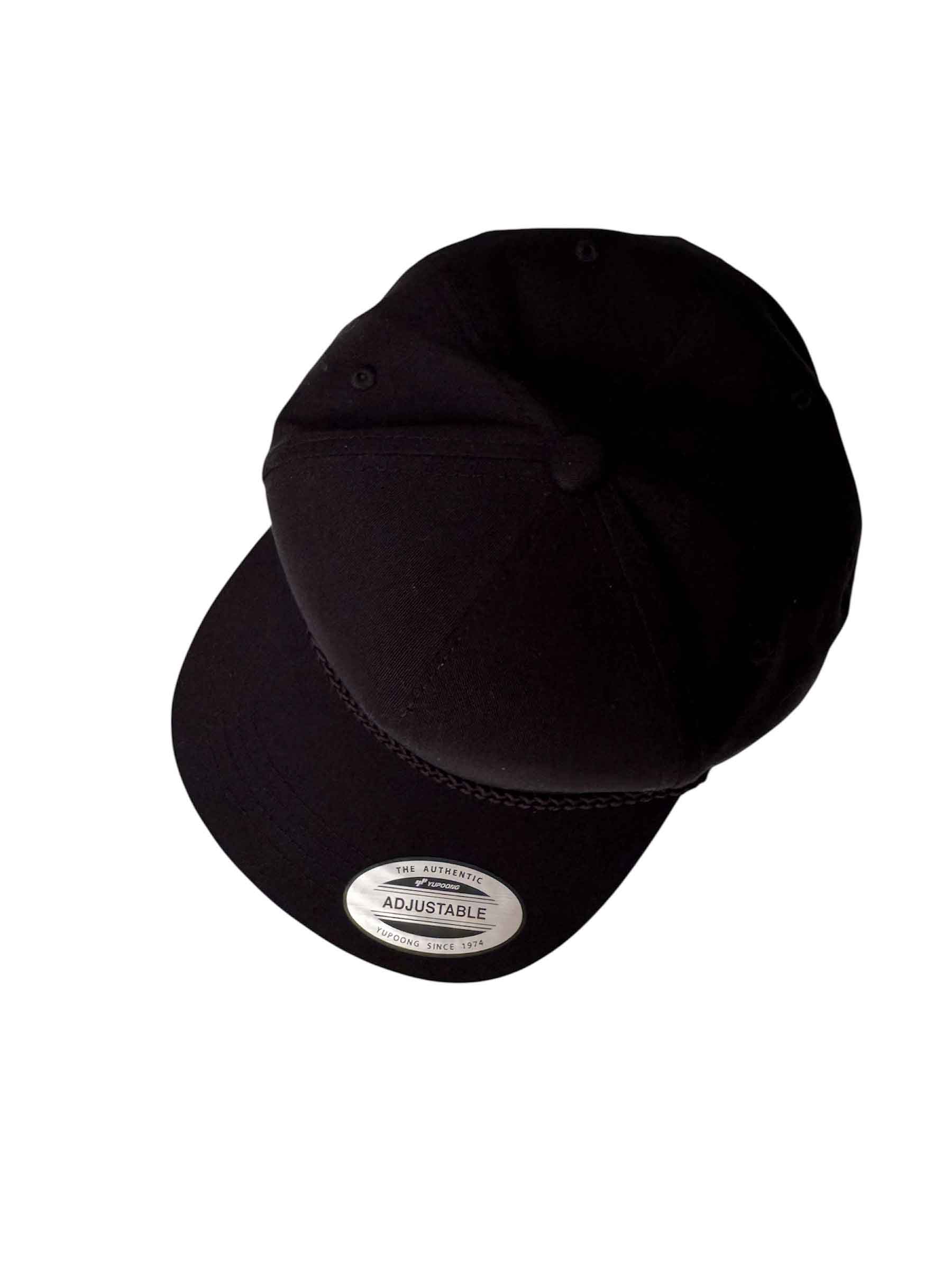 Visiera piatta. 5 pannelli. Chiusura snapback. Cuciture decorative. Nastro intrecciato tono su tono di 0,5 cm sopra la visiera.